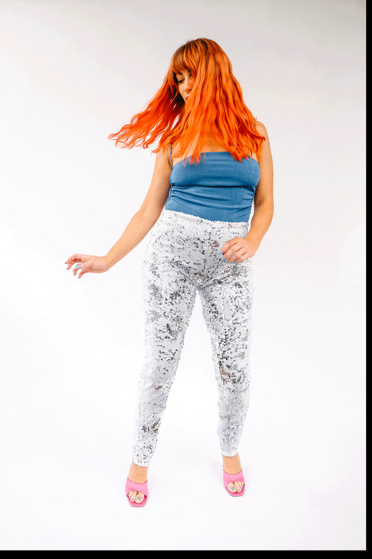 Disco inspired white silver sequin party pants for those who want to make an entrance!